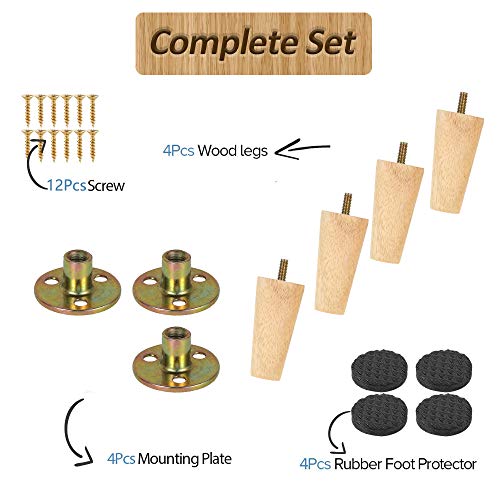 Beenle-Icey 4 PZ Gambe del Divano, Gambe Piedini da Tavolo Gambe del Letto Legno con Accessori di Montaggio Stabile Materiale in Legno Massello Processo di Verniciatura Fai Da Te (H 8CM StileA)