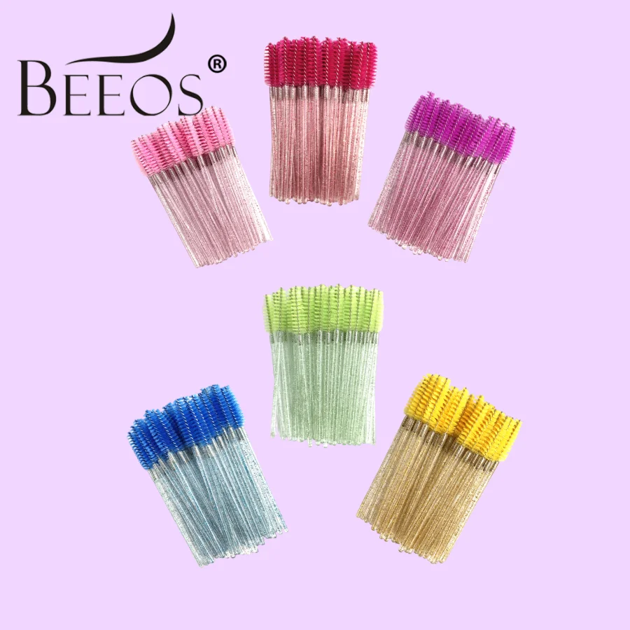 Beeos 50Pcs Eyelash Brushes Makeup Brushes Disposable Mascara Wands Applicator Spoolers Eye Lashes Cosmetic Brush Makeup Tools