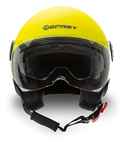 Befast | Rapid II - Casco Jet Omologato con Doppia Visiera in Policarbonato, Casco Scooter con Occhialino Parasole, Casco Moto Jet con Interni Traspiranti e Anallergici, Colore Giallo Fluo Opaco
