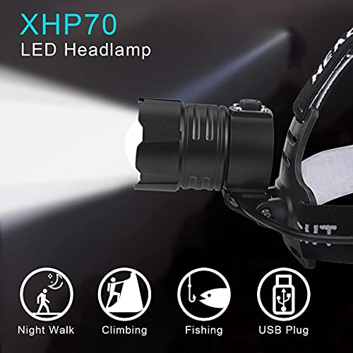 BEFIRE, Lampada Frontale 10000 Lumens, Torcia Frontale XHP70 Potente Luce USB LED Ricaricabile, Lampada da Testa Zoomabile Impermeabile con 3 Batterie e 3 Modalità, 8261