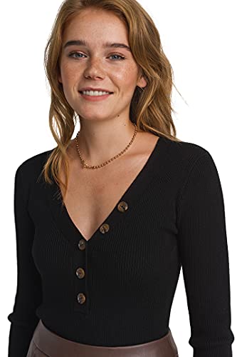 Befree Donna Maglia Maniche Lunghe a Coste con Scollo Profondo a V Nero M