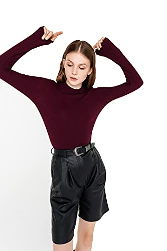 Befree Donna Maglia con Maniche Lunghe a Coste Fini Rosso XXS