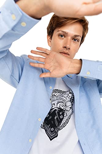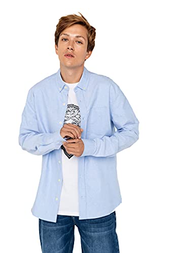 Befree Uomo Camicia in Cotone Oversize con Colletto Button-Down Blu S