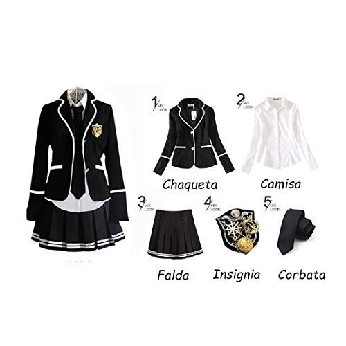 ➤ Set di 5 uniformi scolastici: 1 giacca + 1 camicia + 1 gonna + 1 cravatta + 1 distintivo.