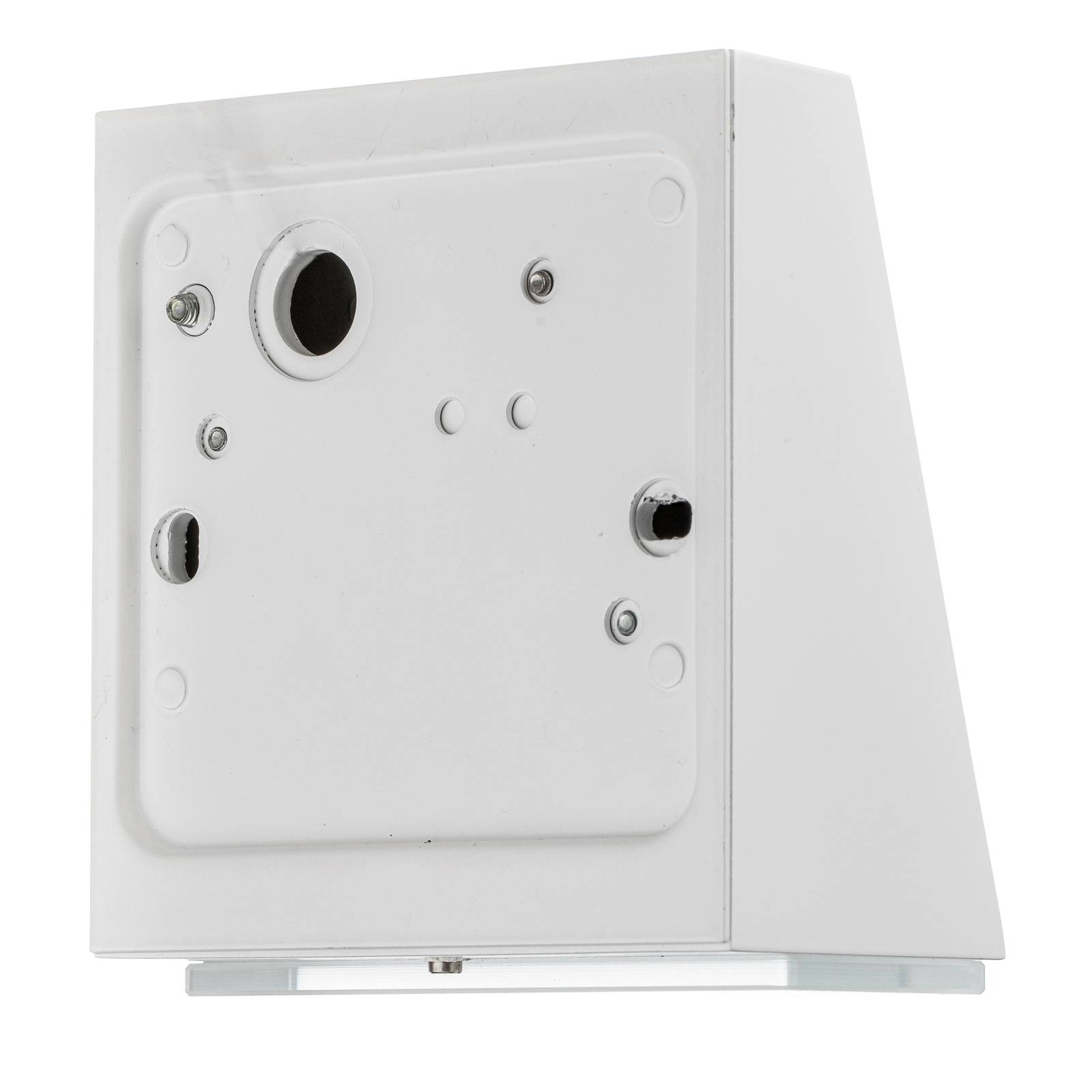 Apparecchio da parete a LED con fascio angolato verso il basso Questa lampada da parete compatta è costituita da un coperchio inferiore in vetro di sicurezza bianco e da un alloggiamento in alluminio fuso. I LED integrati di alta qualità brillano verso il basso senza abbagliamento;
