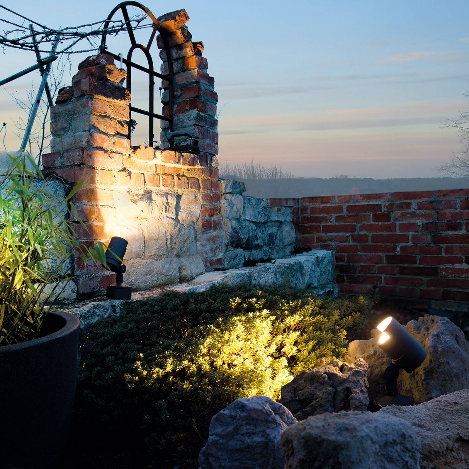 Proiettore da esterno a LED regolabile HB 109 per montaggio a parete Il faretto da superficie HB 109 è ideale per accentuare l'illuminazione di oggetti o aree come sculture, facciate e piante. Realizzato in alluminio pressofuso di colore antracite metallizzato, il faretto è composto da una base rotonda in superficie, una staffa corta con snodo e una testa cilindrica con coperchio. La luce bianca calda del modulo LED a tensione di rete viene emessa attraverso una copertura di vetro trasparente. - Classe di protezione: IP65 - Resistenza agli urti: IK06 - Nessun dispositivo di controllo richiesto;