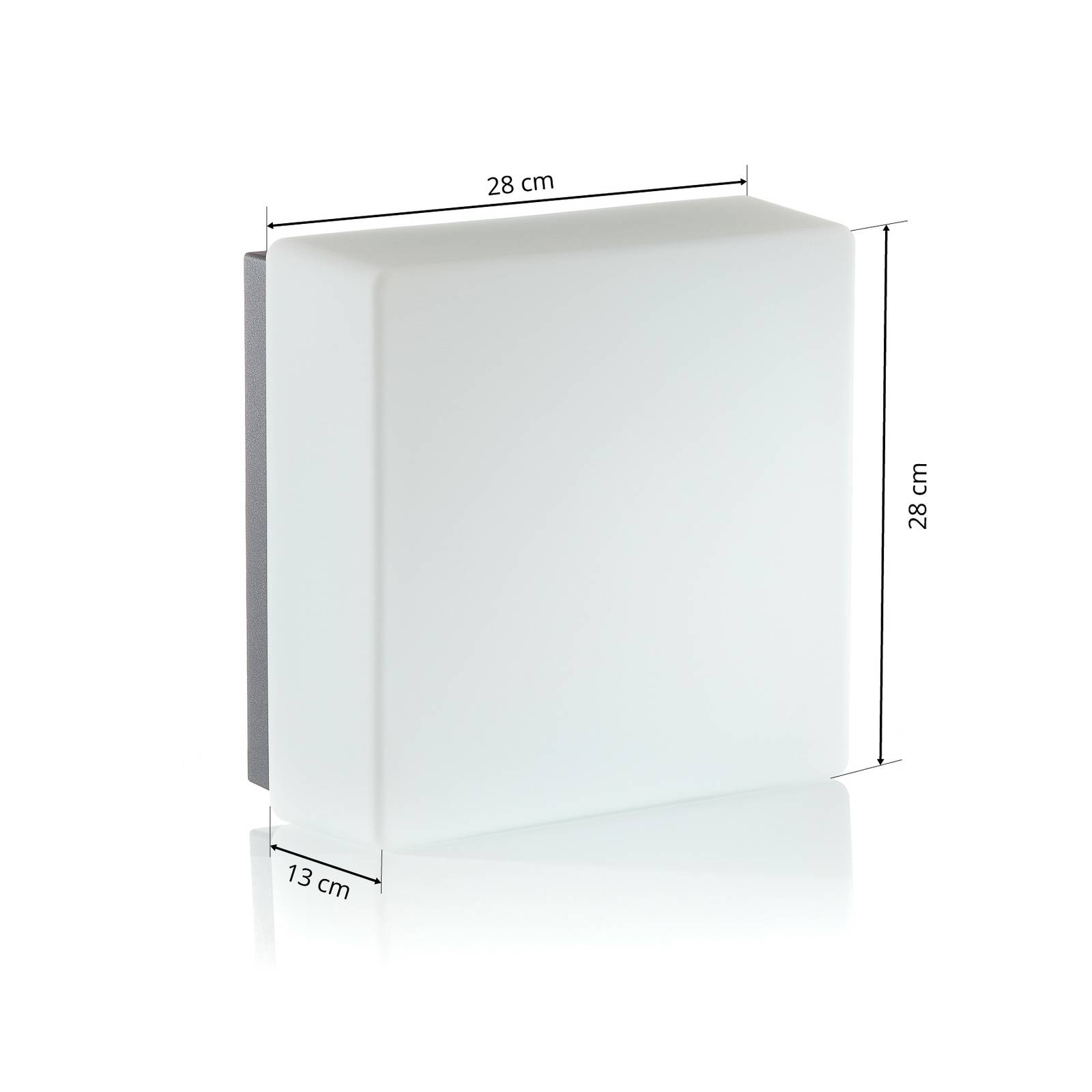 Apparecchio da parete per esterni a LED classico come quadrato bianco - modulo luminoso Una luce omogenea e non abbagliante emana da questo collaudato apparecchio da parete quadrato per esterni Light Brick. Il suo aspetto è chiaro e semplice e tuttavia presenta un oggetto classico che non passerà di moda. Grazie ai bordi leggermente arrotondati, l'alloggiamento bianco appare morbido nella transizione e si fonde senza problemi con la struttura della parete. Realizzato in vetro opale soffiato a bocca e un alloggiamento in alluminio pressofuso, promette durata, robustezza e anche alta qualità. Può essere posizionato ovunque, se sulla parete o sul soffitto dipende dall'utente. Grazie all'IP44, l'apparecchio è protetto contro la polvere e gli spruzzi d'acqua, il che lo rende ideale per le aree esterne coperte. Una fonte di luce adatta è inclusa nella fornitura.