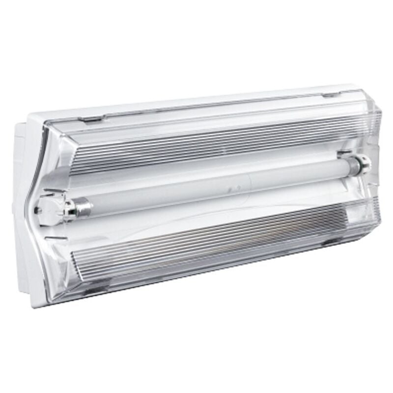 Lampada di emergenza Beghelli EKOSTILE, con le seguenti caratteristiche: Alimentazione 230 Vac ± 10% 50Hz Potenza 8W Assorbimento massimo: 4W Grado di protezione IP40 Versione: SE RM Autonomia: 1 ora Batteria: NiCd 4,8V 0,75 Ah Flusso medio SE: 100 lumen Lampada: T5 Attacco: G5 Apparecchio con ottica simmetrica segmentata, per ottimizzare le prestazioni illuminotecniche. Idoneo per installazioni sia a soffitto che a parete, anche direttamente su scatola 503. Predisposto per installazione con tubi Ø16 e Ø20, sia dall'alto che lateralmente. L'assemblaggio di corpo, riflettore e diffusore avviene per mezzo di ganci a scatto, facilmente apribili con un cacciavite. Ls dotazione di scatola da incasso e cornice coprifilo soddisfa le tipologie di installazione che necessitano di un design più elegante o dove si deve ridurre lo spazio di ingombro. Altre caratteristiche tecniche: DV schermo: 25 m Funzionamento: non permanente (SE) RM Conformità EN 60598-1, EN 60598-2-22, UNI EN 1838 Temp.