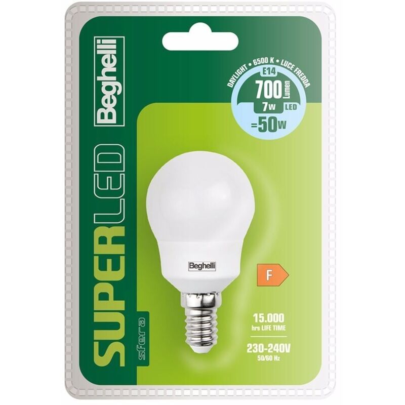 Codice: 56893BL Marca: BEGHELLI. Beghelli Lampadina Led Sfera 7W e14 6500k Superled Luce Fredda