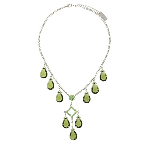 Behave Collana a catena color argento - Collana pendenti con pendenti in pietra verde cristallo - Elegante collana per donna