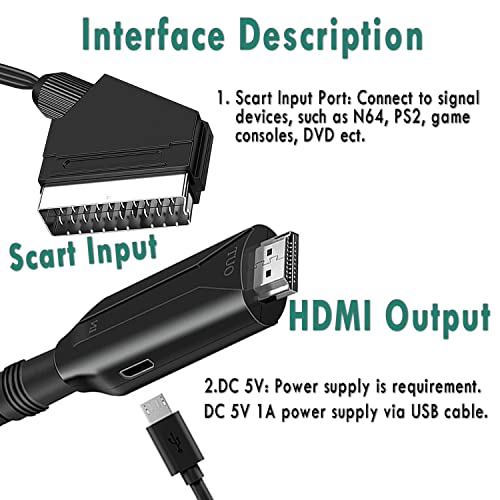 Beigemo Convertitore scart a HDMI con cavi HDMI, Full HD 720P/1080P Switch Audio Converter per HDTV Monitor STB VHS Xbox PS3 Sky Blu-Ray Lettore DVD Player
