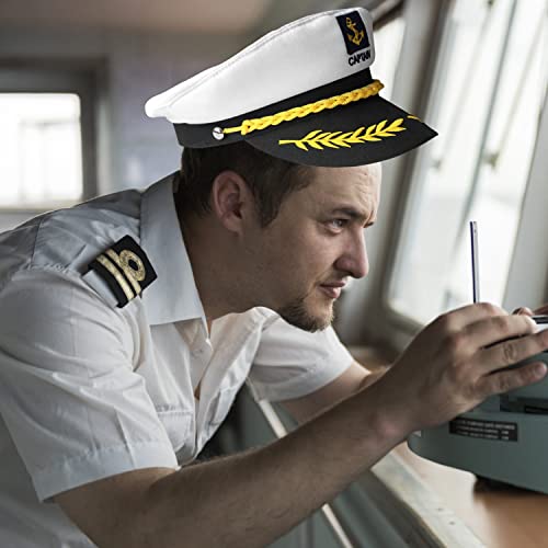 BEIIEB Cappello da capitano in 1 pezzo con 1 paio di guanti, cappello da marinaio vintage bianco estivo, cappello da marinaio da capitano della marina, accessori per barche regolabili.