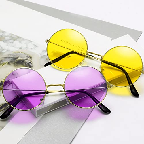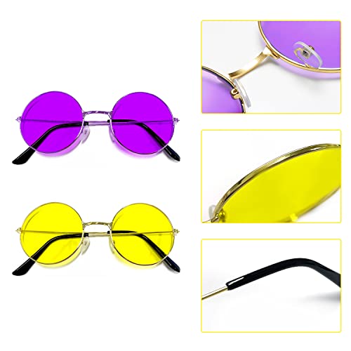 BEIIEB Confezione da 4 occhiali da sole hippie, inclusi 2 occhiali rotondi (viola, gialli) e 2 occhiali a cuore (rosa, blu), eleganti occhiali da sole oscuranti, accessori hippie