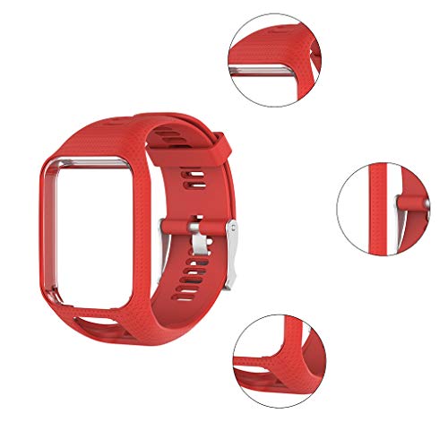 BeIilan Sostituzione Cinghia Banda di Silicone Cinturino da Polso per Tomtom Fibbia per Tomtom 2 2 3 Runner 2 3 Spark 3, Rosso