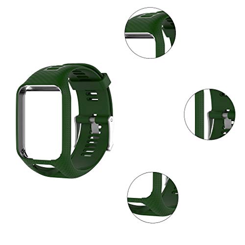 BeIilan Strap Banda di Silicone Cinturino da Polso di Ricambio Braccialetto Intelligente per Tomtom 2 3 Runner 2 3 Spark 3, Verde