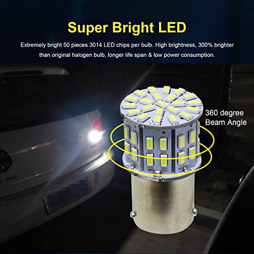 Ogni lampadina ha 50 chip led 3014 ad alta potenza, 12-24 V, 800 lumen di uscita, con obiettivo ad alta definizione, buona luce. Progettato come parti in alluminio nero, buone prestazioni di dissipazione del calore. Più luminoso e più sicuro della lampadina originale dell'auto.