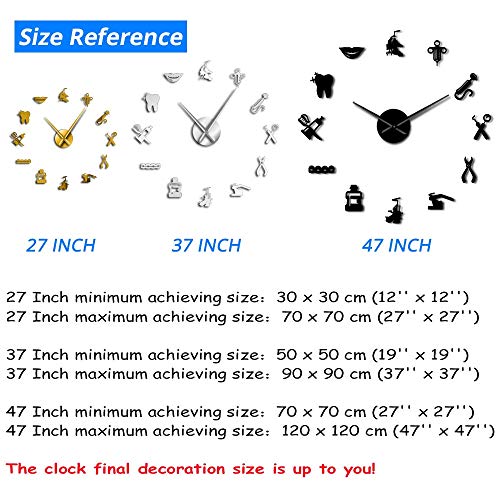 Beisite Dentista DIY Orologio da parete gigante Dentista Orologio da parete di grandi dimensioni Specchio con ago grande Dentista Decorazioni per ufficio Dentista Regalo medico Art (Oro, 27")