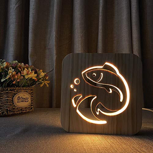 Beisite Tema di pesce Lampada in legno 3D Lampada da notte a LED Decorazione della stanza di casa Lampade da tavolo creative Per regalo per bambini