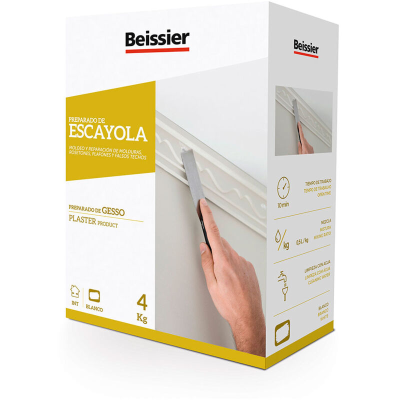 Beissier intonaco 4kg intonaco per modellare e riparare. per modellare e riparare materiali decorativi de intonaco per interni come modanature, soffitti, rosoni, controsoffitti, ecc. riempimento de di crepe e fori. artigianato. modanatura. assenza di ritiro. facilità di de carteggiatura. resistenza a alla flessione: 35kg/cm². presa rapida.