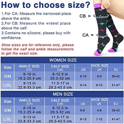 COMFORT & DUREVOLE: design unico e carino, combinazioni multicolore, calze a compressione coprenti e durevoli al ginocchio con perfetta elasticità e traspirabilità, tessuti medici realizzati con macchine di produzione specializzate, il tessuto traspirante mantiene una temperatura ottimale, mantiene il corpo asciutto e inodore, senza lattice, compressione moderata 15-20 mmHg con supporto per arco plantare e pianta del piede.