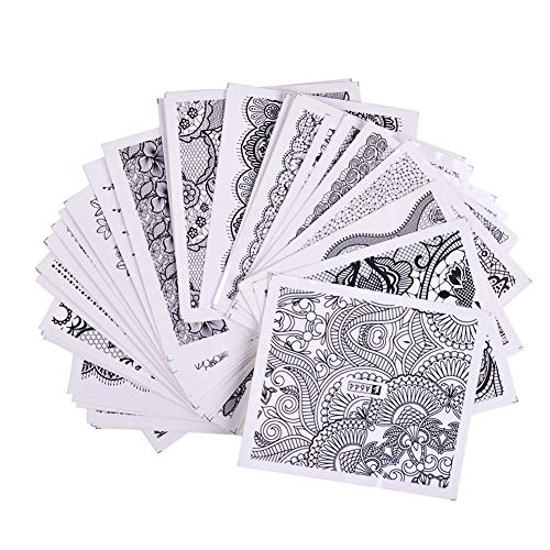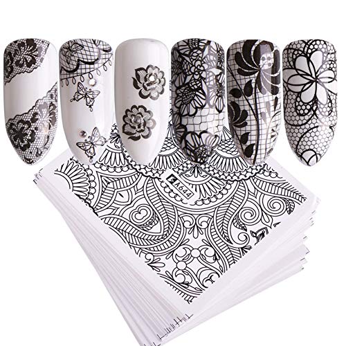 Beito 48Pcs Nero Pizzo Nail Art Adesivi Acqua Trasferimento Unghie Consigli Adesivi Fiore Foglie Manicure Strumenti