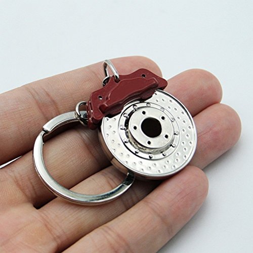 Beito - Portachiavi creativo a forma di freno a disco, con catena e dettaglio rosso