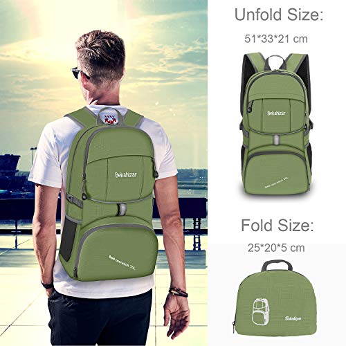 Bekahizar 35L Zaino pieghevole, ultra leggero impermeabile piccolo zaino da viaggio per donna uomin bambini campeggio trekking viaggi sport (verde)