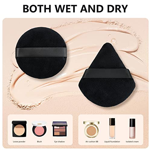 【Dimensioni perfette】: otterrai 8 piumini da cipria, 4 ciascuno di bignè rotondi e bignè triangolari. I piumini triangolari misurano circa 7 cm / 2,76 pollici mentre i piumini rotondi sono 6 cm / 2,36 pollici, che è una dimensione normale per adattarsi perfettamente alla tua mano .