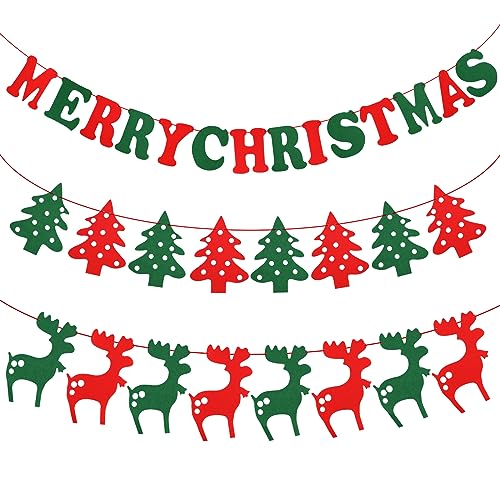 Bekecidi 3 Pezzi Striscione di Feltro Natalizio Striscione di Buon Natale Rosso Verde Babbo Natale Renna Albero di Natale Bandiera Decorazione per Festa di Natale Casa Appeso Decorazioni
