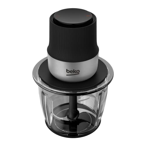 Beko - CHG81442BX - Tritatutto Elettrico Sirius Line, 400 Watt, Ciotola in Vetro da 1000 ml, 2 Velocità, Base Antiscivolo - Nero/Inox, 18 x 16 x h22,5 cm