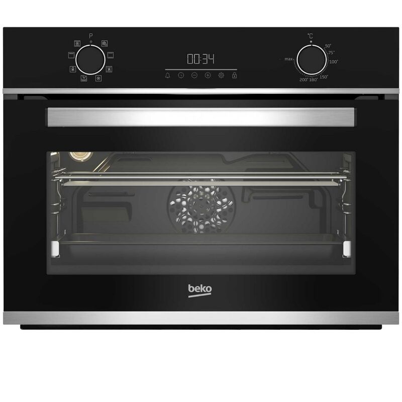 Forno integrato multifunzione Beko BBCM13300XC per risultati di cottura perfetti. La cottura 3D permette di cucinare su 3 livelli diversi contemporaneamente, grazie all'utilizzo simultaneo delle resistenze superiore, inferiore e anulare. L'aria viene distribuita uniformemente nella cavità del forno, senza trasferimento di sapori. Grazie alla sua capacità di 48 litri, questo forno ti offre la possibilità di cucinare pietanze di grandi dimensioni. La guida telescopica consente un accesso semplificato e sicuro alle stoviglie: ora inserire e togliere le stoviglie dal forno è semplicissimo! Il display Maxi LED bianco è allo stesso tempo semplice e intelligente. I suoi tasti sensibili consentono di impostare il tempo di cottura o un allarme, ma anche di bloccare i tasti di controllo. Le pareti catalitiche facilitano l'eliminazione di tutti gli schizzi e lo sporco con un consumo energetico minimo. Tipo di prodotto: Forno da incasso. Indice di efficienza energetica (EEI cavità intera): 96.