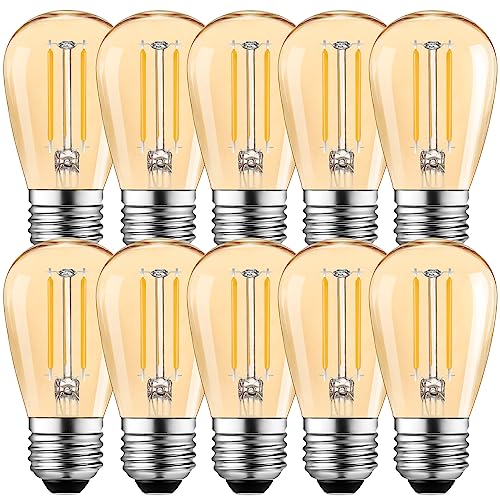 Belaufe S14 Edison Lampadina a filamento LED vintage da 2 W, lampadina LED ST45 E27, bianco caldo 2700 K, non dimmerabile, vetro dorato, confezione da 10