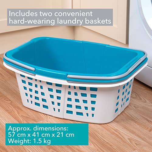 Beldray La030450Tq Ceste Per La Biancheria In Durevole Plastica Con Manici, Turchese Bianco, 57 x 41 x 14 cm