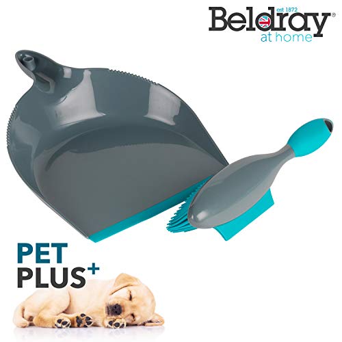 Beldray LA069351EU - Set spazzola Pet Plus+ in gomma e paletta, Design compatto, spazzola raccogli briciole, pulizia del spazzola terra, Grigio/turchese