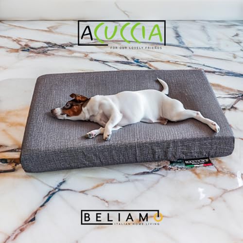 BELIAMO Cuccia Cane Interno Taglia Media M - Lettino per Cani in Memory Foam Cuscino Cane Sfoderabile e Lavabile Traspirante Antiscivolo 50x80x8 cm Grigio - PLUTO