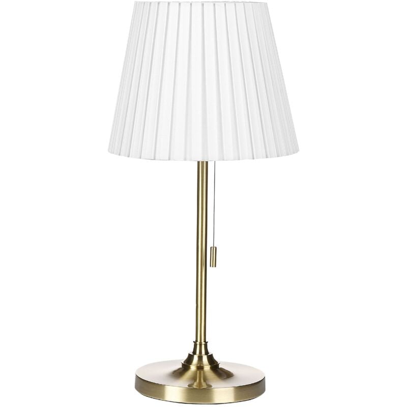 Lampada classica per il soggiorno e la camera da letto. Completa il look dei tuoi interni con questa lampada da tavolo semplice ma chic. Il paralume in tessuto crea una piacevole e morbida luce d'ambiente che illuminerà splendidamente l'intera stanza di sera. La base in metallo garantisce la stabilità del pezzo e l'interruttore con cordicella aggiunge un tocco elegante al design. Dettagli: Tipo di prodotto: Lampada da tavolo Stile: Classico Colore principale: Ottone Tipo di materiale: Metallo Materiale principale: Ferro Materiale secondario: Poliestere Materiale della base: Ferro Materiale del paralume: Poliestere Potenza elettrica: 40W Finitura: Opaca Codice IP di protezione: IP 20 Lampadine richieste: 1 Voltaggio: 230 V (50 Hz) Dimensioni: Dimensioni della base: 16x16x5 Lunghezza del cavo: 180 cm Profondità: 23 cm Larghezza: 23 cm Altezza: 48 cm Peso: 1.3 kg L'offerta include: 1 x Lampada da tavolo, Non include: Lampadine Caratteristiche chiave: Ideale come luce ambiente, Design