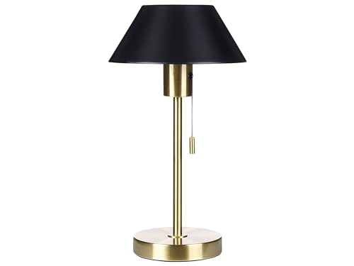 Beliani Lampada da Tavolo in Metallo Nero e Dorato 37 cm con Paralume Conico