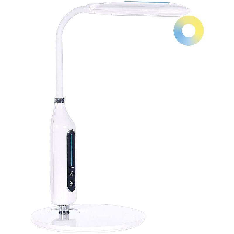 Lampada da lettura dal design moderno. Aggiungi funzionalità al tuo posto di lavoro con questa lampada da ufficio LED. È realizzata in materiale sintetico di alta qualità. Il braccio pieghevole consente di orientare la luce nel punto desiderato. La base è dotata di un pannello touch che regola la luminosità e la temperatura del colore. Dettagli: Tipo di prodotto: Illuminazione da ufficio Stile: Moderno Colore principale: Bianco Temperatura colore LED: Bianco caldo Tipo di materiale: Metallo Materiale principale: Materiale sintetico Materiale secondario: Silicone Materiale della base: Metallo Materiale del paralume: Metallo Potenza elettrica: 7W Finitura: Brillante Codice IP di protezione: IP 20 Flusso luminoso LED: 460/700/350 Tipo di LED: SMD 2835 LED: Sì Voltaggio: 220-240 V (50 Hz) Dimensioni: Dimensioni della base: 18x18 Lunghezza del cavo: 130 cm Profondità: 18 cm Larghezza: 21 cm Altezza: 38 cm Peso: 1 kg L'offerta include: 1 x Lampada da tavolo Caratteristiche chiave