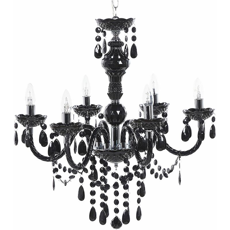 Elegante candelabro con cristalli. Questo lussuoso lampadario, grazie ai suoi 6 punti luce, illuminerà ogni stanza con classe. I preziosi cristalli, creano un'atmosfera glamours e affascinante per uno stile al contempo classico ed elegante. Dettagli: Tipo di prodotto: Lampadario Stile: Glamour Colore principale: Nero Tipo di materiale: Materiale sintetico Materiale principale: Materiale sintetico Materiale secondario: Metallo Materiale del paralume: Metallo Potenza elettrica: Max. 40W Codice IP di protezione: IP 20 Lampadine richieste: 6 Voltaggio: 220-240 V (50 Hz) Dimensioni: Lunghezza del cavo: 85 cm Profondità: 59 cm Larghezza: 59 cm Altezza: 145 cm Peso: 3 kg L'offerta include: 1 x Lampadario, Non include: Lampadine Caratteristiche chiave: Installazione facile e rapida, Ideale come luce ambiente, Ideale sia per la camera da letto che per il soggiorno, Molto chic, Aggiunge un tocco di stile a ogni stanza, Risparmio energetico ottimizzato Guida al montaggio: Richiede installazione