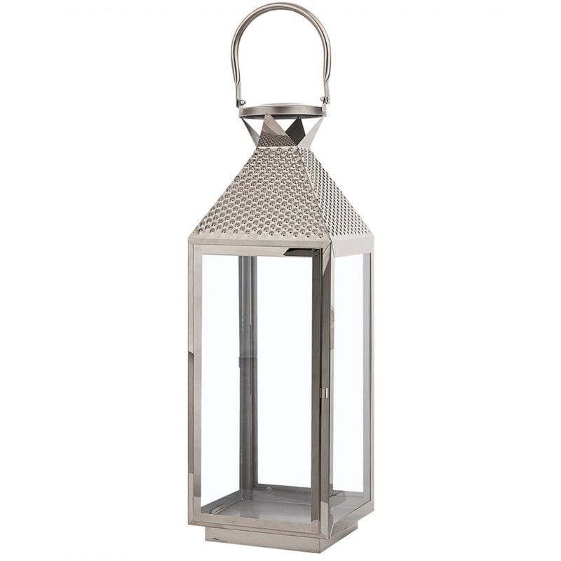 Lanterna decorativa per ogni occasione. Lanterna dalla forma moderna e dal design classico che crea un'atmosfera di benessere, per un comfort speciale all'esterno ma anche all'interno di casa tua. Realizzata in resistente acciaio inossidabile e vetro di alta qualità, che ne permette un uso in perfetta sicurezza. Può essere facilmente aperta lateralmente per inserire candele, luci o led e si adatta ad ogni stile. Dettagli: Tipo di prodotto: Lanterna Stile: Moderno Colore principale: Argento Tipo di materiale: Acciaio Materiale principale: Acciaio inox Materiale secondario: Vetro temperato Forma: Rettangolare Realizzato a mano: No Dimensioni: Profondità: 18 cm Larghezza: 18 cm Altezza: 55 cm Peso: 2 kg L'offerta include: 1 x Lanterna Caratteristiche chiave: Pratica maniglia, Arredo decorativo e funzionale, Materiali di altissima qualità, Non richiede una manutenzione regolare, Sia per interno che esterno Guida al montaggio: Non richiesto Consigli per la cura: Acciaio inox: 1.In inverno