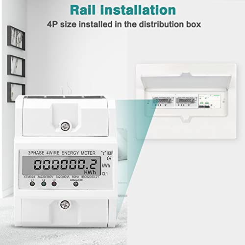 Belissy Digital LCD 3 x 20 (80A) Tre Fase Quattro Fili DIN-Rail KWh Enercy Energy Meter