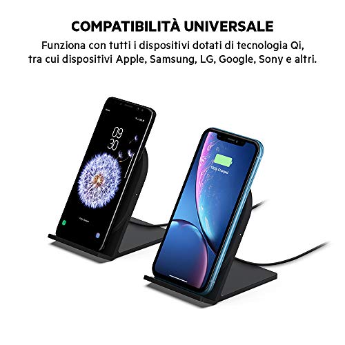 Belkin Boost Up Supporto di Ricarica Wireless da 5 W per iPhone 11, 11 Pro/Pro Max, XS, XS Max, XR, X, SE, Samsung S10, S10+, Huawei P30, P30 Pro, Google, Senza Presa di Ricarica Rapida, Nero