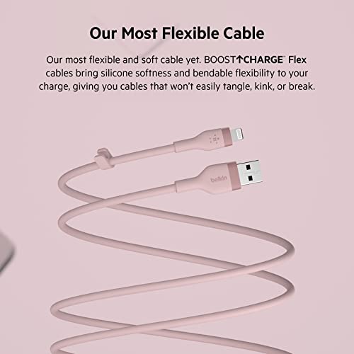 Belkin BoostCharge Flex Cavo da USB Type A a Lightning in silicone (1 m), cavo di ricarica certificato MFi per iPhone 14/14 Plus, 13, 12, Pro, Max, mini, SE, iPad e altri - Rosa