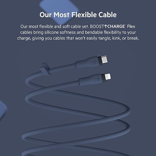 Belkin - BoostCharge Flex Cavo da USB Type C a Lightning in silicone (1 m), certificazione MFi, ricarica rapida USB,C PD da 20 W, per iPhone 13, 12, 11, Pro, Max, mini, SE, iPad e altri, Rosa