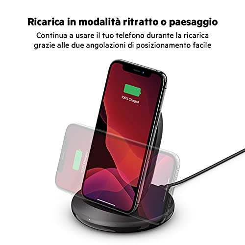 Belkin BoostCharge Supporto di ricarica wireless da 15 W (Caricabatteria wireless Qi rapido per iPhone, Samsung, Pixel e altri) - Nero