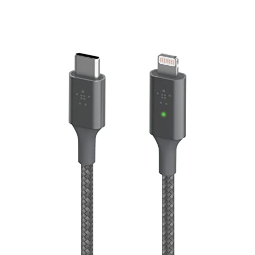 Belkin Cavo di Ricarica da USB-C a Lightning con LED Intelligente, 1.2 m, Visualizza lo Stato di Ricarica, Ricarica Rapida per iPhone, Grigio