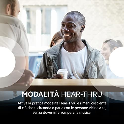 I controlli touch senza fili o pulsanti a pressione consentono di utilizzare anche un singolo auricolare nella modalità Mono. La modalità Hear-Thru ti aiuta ad essere più cosciente di ciò che ti circonda.