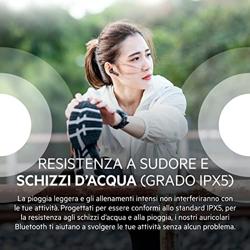 I materiali resistenti al sudore e all'acqua (grado IPX5) proteggono dai possibili danni causati dal maltempo e dagli allenamenti intensi. Auricolari in-ear ideali per sport, corsa, palestra o durante gli spostamenti.