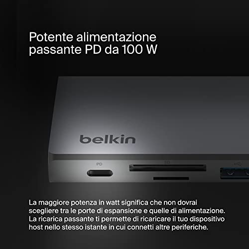 Belkin Hub USB-C, 7 in 1alimentato con porte HDMI 4K a 60 Hz, USB PD da 100 W, Ethernet 2,5 Gb, 2 USB-A e slot SD e microSD per MacBook Pro 14/16, iPad Pro 12.9/11, XPS e Surface