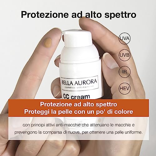 Bella Aurora, CC Cream Anti-Macchie SPF 50+, Crema Solare Colorata Anti-Macchia, Crema Viso Colorata SPF 50+, 30ml (Tono Chiaro)